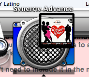 So here are some unscientific demonstration images; first of all we have a picture of the Dock icon as it was about one week ago. You can see that it's a little different than the icon in the currently-shipping preview of Synergy Advance because at this point, prior to embarking on the Core Image rewrite, I had already started to add user preferences for altering the opacity of the cover art badge and the colors of the various elements in the icon: