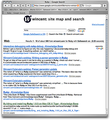 I've made some minor changes to the Google-powered site search today, namely, adding a Wincent logo and header to the search results: